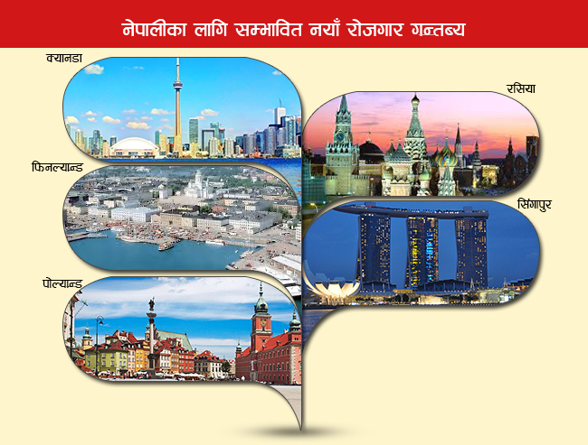 नयाँ रोजगारी खुल्न लागेका देशहरुमा क्यानडा, सिंगापुर, पोल्याण्ड, रसिया र फिनल्याण्ड छन् ।
